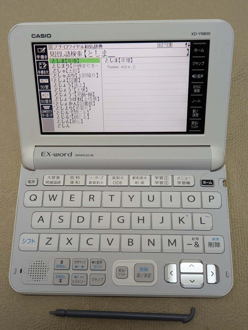 Le Casio XD-Y9800 est un dictionnaire électronique commercialisé en février 2016 à un prix avoisinant les 35 000 yens (approximativement 250 euros) à destination d’étudiants en anglais.